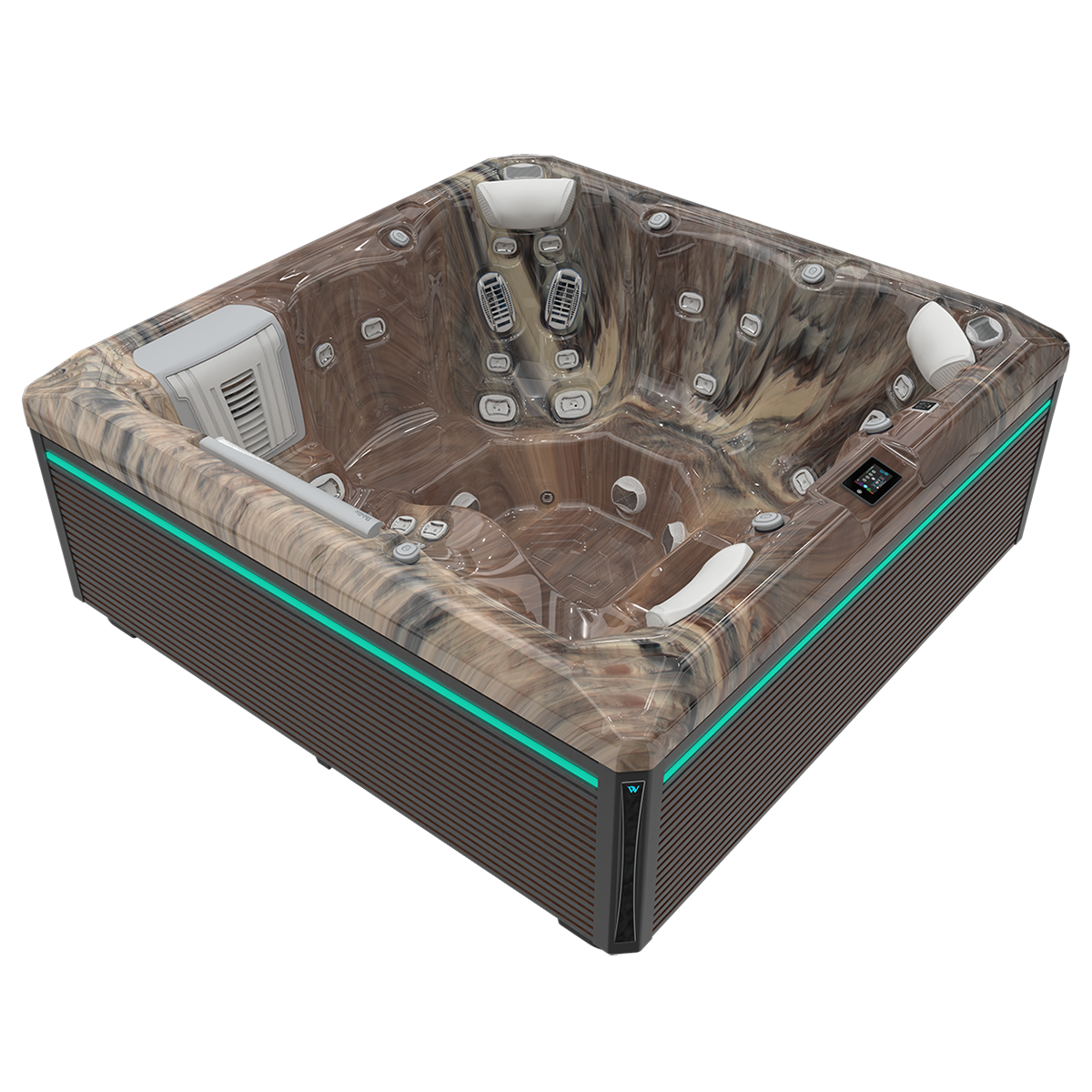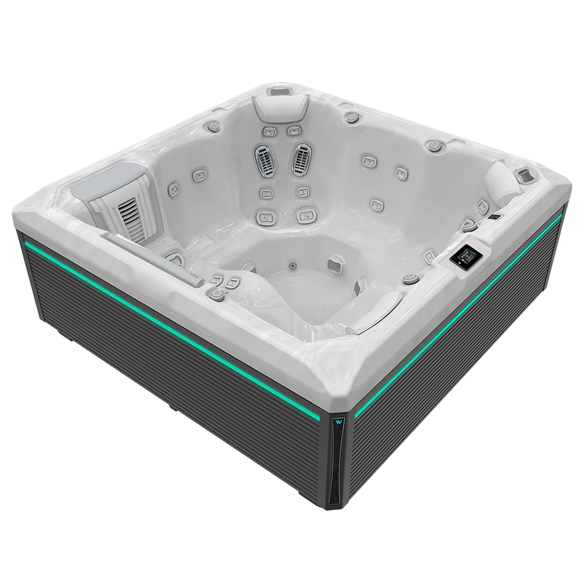 Met een energiezuinige W-EC circulatiepomp (0,25kW) en een 3PK massagepomp is dit model voorzien van de nodige kracht om een deugddoende massage te kunnen bieden. Naast de sterke watermassage heeft dit model ook tal van leuke opties. Onder andere de lichttherapie aan de waterlijn rondom het hele bad, verlichte hoekpanelen, WiFi Connectie, standaard Scandinavische isolatie van 3,5 cm Polyform, Gecko Touch display, het nieuwe Ozmix™ System voor desinfectie van het water en tot slot het audio systeem Aquasoul™ 2.1.